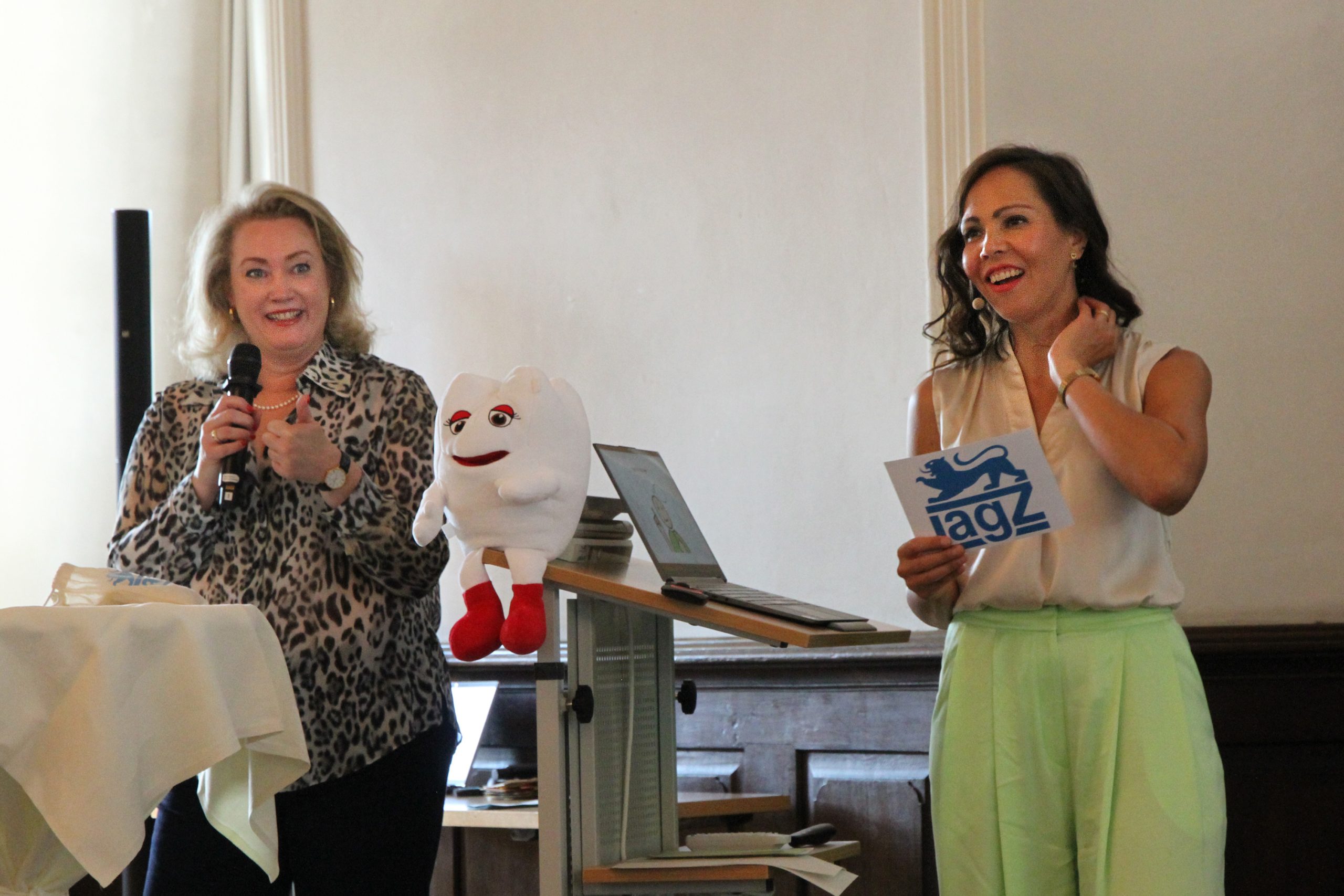 Im Anschluss daran stellte Gesundheitspädagogin und Prophylaxehelferin Sybille van Os-Fingberg ihr Konzept mit dem Titel „Erweiterte Bildungsimpulse für pädagogische Fachkräfte, Eltern und Kinder“ vor. Im Auftrag der LAGZ werden im Zuge dessen drei Aufklärungs- und Motivationsfilme produziert, die den RAGZ als Unterstützung ihrer Arbeit im Bereich Gesundheitsförderung und Prävention bereitgestellt werden.